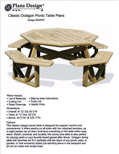 Classic Large Octagon Picnic Table / Bench Woodworking Project Plans Pattern #ODF07 Review
